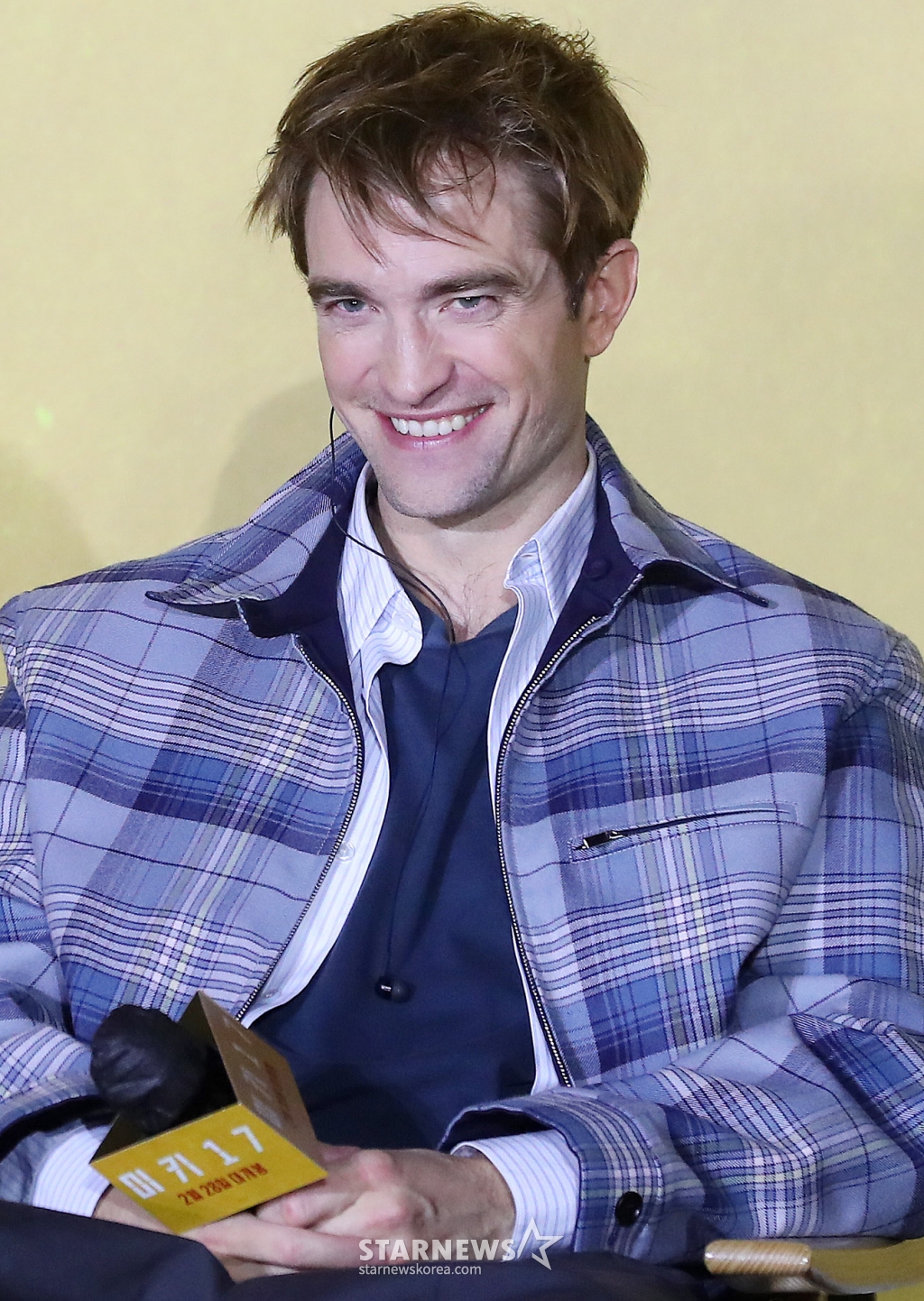 할리우드 배우 로버트 패틴슨이 20일 오전 서울 용산구 아이파크몰 CGV에서 진행된 영화 '미키17' 기자간담회에 참석해 미소를 짓고 있다.