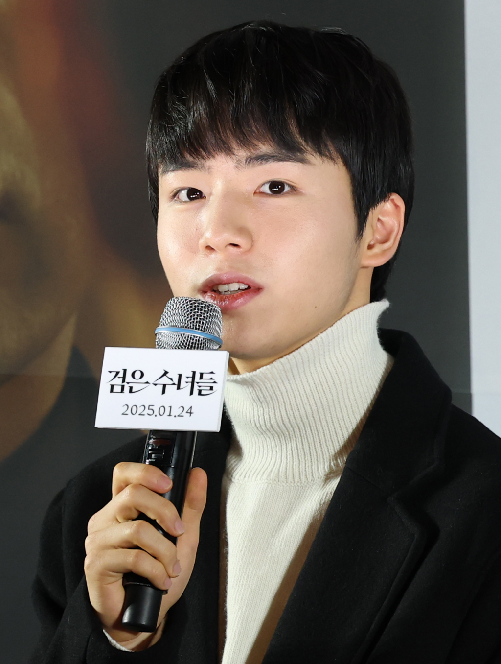 (서울=뉴스1) 권현진 기자 = 배우 문우진이 20일 서울 강남구 메가박스 코엑스에서 열린 영화 '검은 수녀들'(감독 권혁재) 언론시사회에서 인사말을 하고 있다. '검은 수녀들'은 강력한 악령에 사로잡힌 소년을 구하기 위해 금지된 의식에 나서는 사람들의 이야기를 그린 작품이다. 2025.1.20/뉴스1 Copyright (C) 뉴스1. All rights reserved. 무단 전재 및 재배포, AI학습 이용 금지. /사진=(서울=뉴스1) 권현진 기자