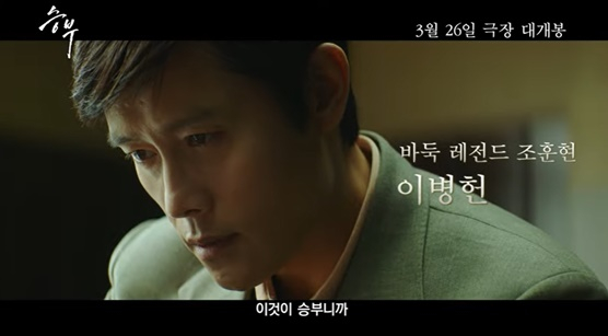 영화 '승부' 내달 26일 극장 개봉을 확정한 가운데 공식 예고편을 공개했다. . '승부'는 스승과 제자이자, 라이벌이었던 한국 바둑의 두 전설 조훈현(이병헌 분)과 이창호(유아인 분)의 피할 수 없는 승부를 담은 영화로, 실화와 실존 인물을 기반으로 한다.