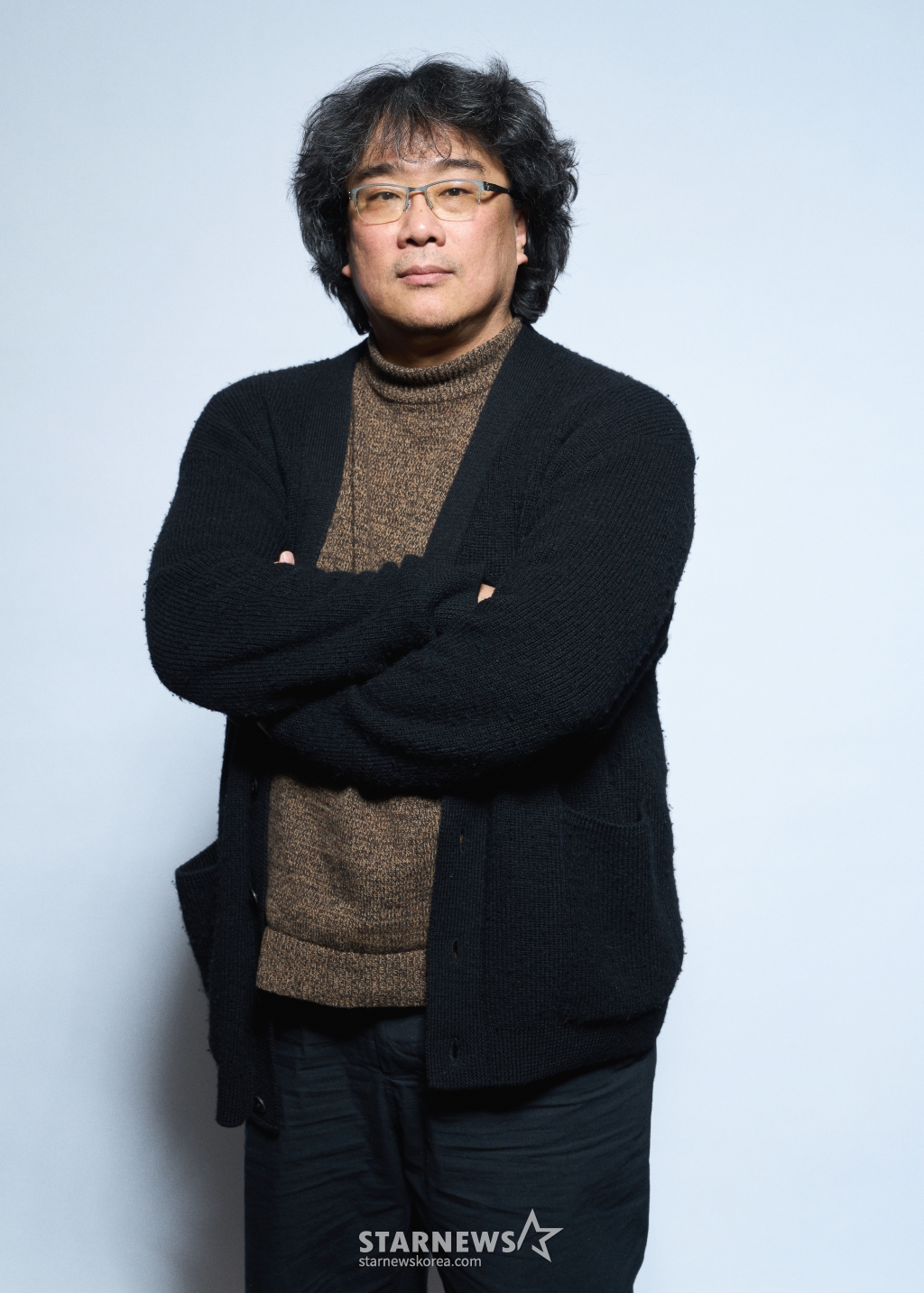 봉준호 감독이 서울 영등포구 콘래스 서울에서 진행된 영화 '미키17' 개봉 관련 인터뷰를 위해 포즈를 취하고 있다.