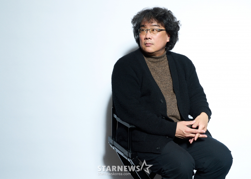 봉준호 감독이 서울 영등포구 콘래스 서울에서 진행된 영화 '미키17' 개봉 관련 인터뷰를 위해 포즈를 취하고 있다.