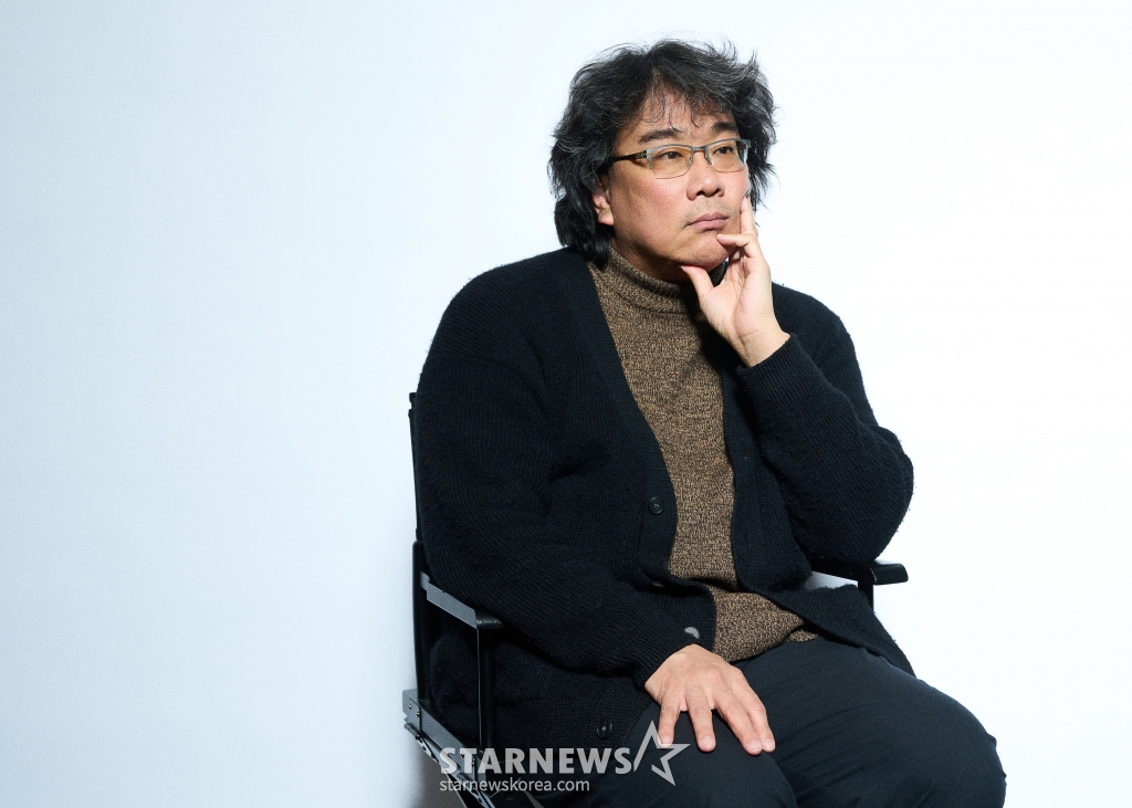 봉준호 감독이 서울 영등포구 콘래스 서울에서 진행된 영화 '미키17' 개봉 관련 인터뷰를 위해 포즈를 취하고 있다.