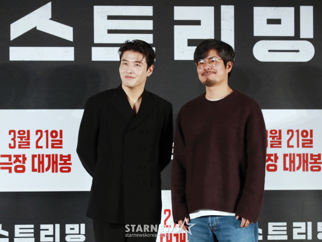 배우 강하늘, 조장호 감독이 26일 오전 서울 광진구 롯데시네마 건대입구점에서 진행된 영화 '스트리밍'(감독 조장호) 제작발표회에 참석해 포즈를 취하고 있다.