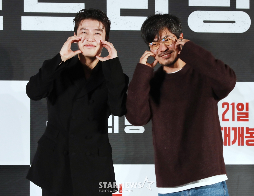 배우 강하늘, 조장호 감독이 26일 오전 서울 광진구 롯데시네마 건대입구점에서 진행된 영화 '스트리밍'(감독 조장호) 제작발표회에 참석해 포즈를 취하고 있다.