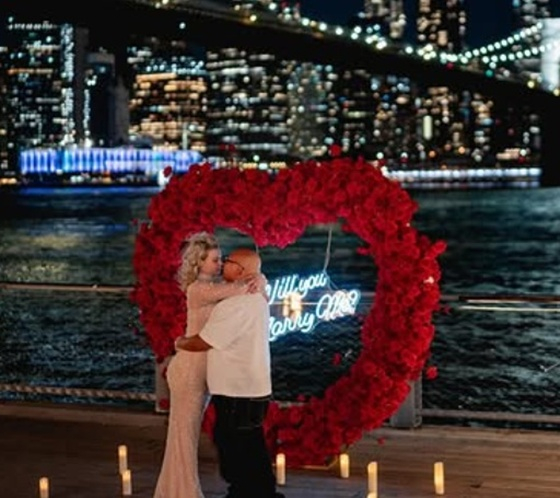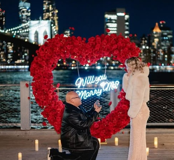 공개된 사진 속에는 제이콥이 연인 베로니카를 향해 무릎을 꿇고 반지를 내미는 모습이 담겼다. 꽃으로 장식된 하트 모양을 배경으로 두 사람은 껴안고 서로를 마주 보고 있다. 로맨틱한 프러포즈와 함께 다이아몬드 반지가 눈길을 끌었다.