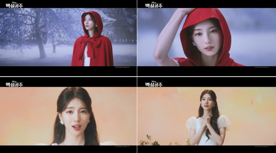 이번 영화의 메인 테마곡인 '간절한 소원(Waiting On A Wish)'은 권력에 대한 욕망으로 왕국을 지배한 사악한 '여왕'(갤 가돗)에 맞서, 자신의 길을 스스로 선택하고 선하고 현명하게 나아가려는 '백설공주'의 간절한 소원을 담은 곡. 공개된 티저 영상에서는 눈보라가 치는 배경 속에서 빨강 망토를 입고 등장한 수지가 이내 마법의 숲을 배경으로 선한 마음을 담은 '백설공주'의 간절한 소원을 노래하는 모습이 담겼다.