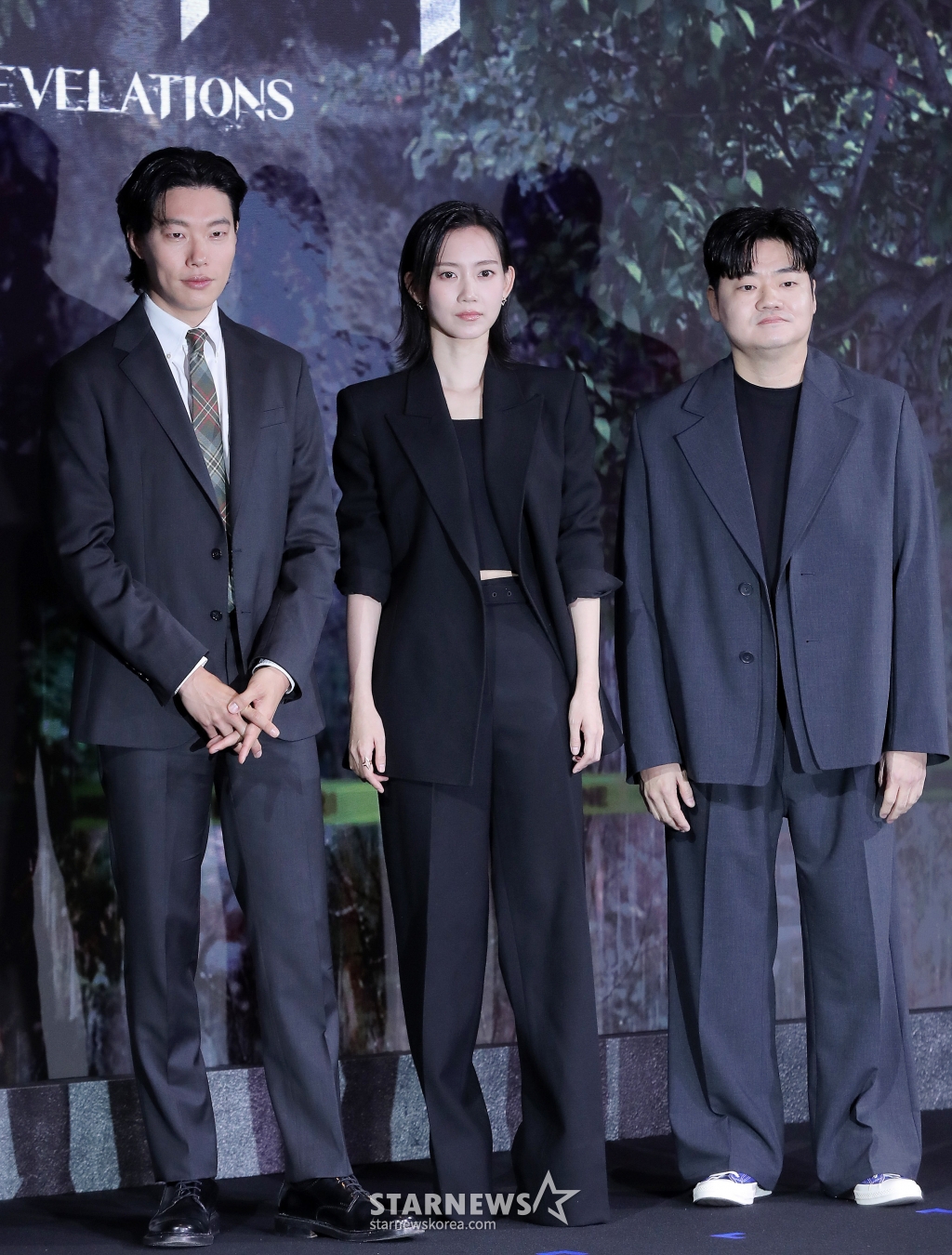 18일 서울시 마포구 호텔 나루 서울 엠갤러리에서 넷플릭스 영화 '계시록'의 제작보고회가 개최됐다. 이 자리에는 연상호 감독을 비롯해 류준열 신현빈 신민재가 참석해 다양한 이야기를 나눴다.