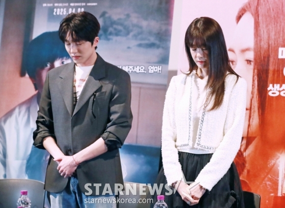 배우 강찬희, 이요원이 1일 오후 서울 CGV용산아이파크몰에서 진행된 영화 '귀신들'(감독 황승재) 언론배급시사회 및 기자간담회에 참석해 함께 출연했던 故이주실 배우를 추모하고 있다. /2025.04.01 /사진=이동훈 photoguy@