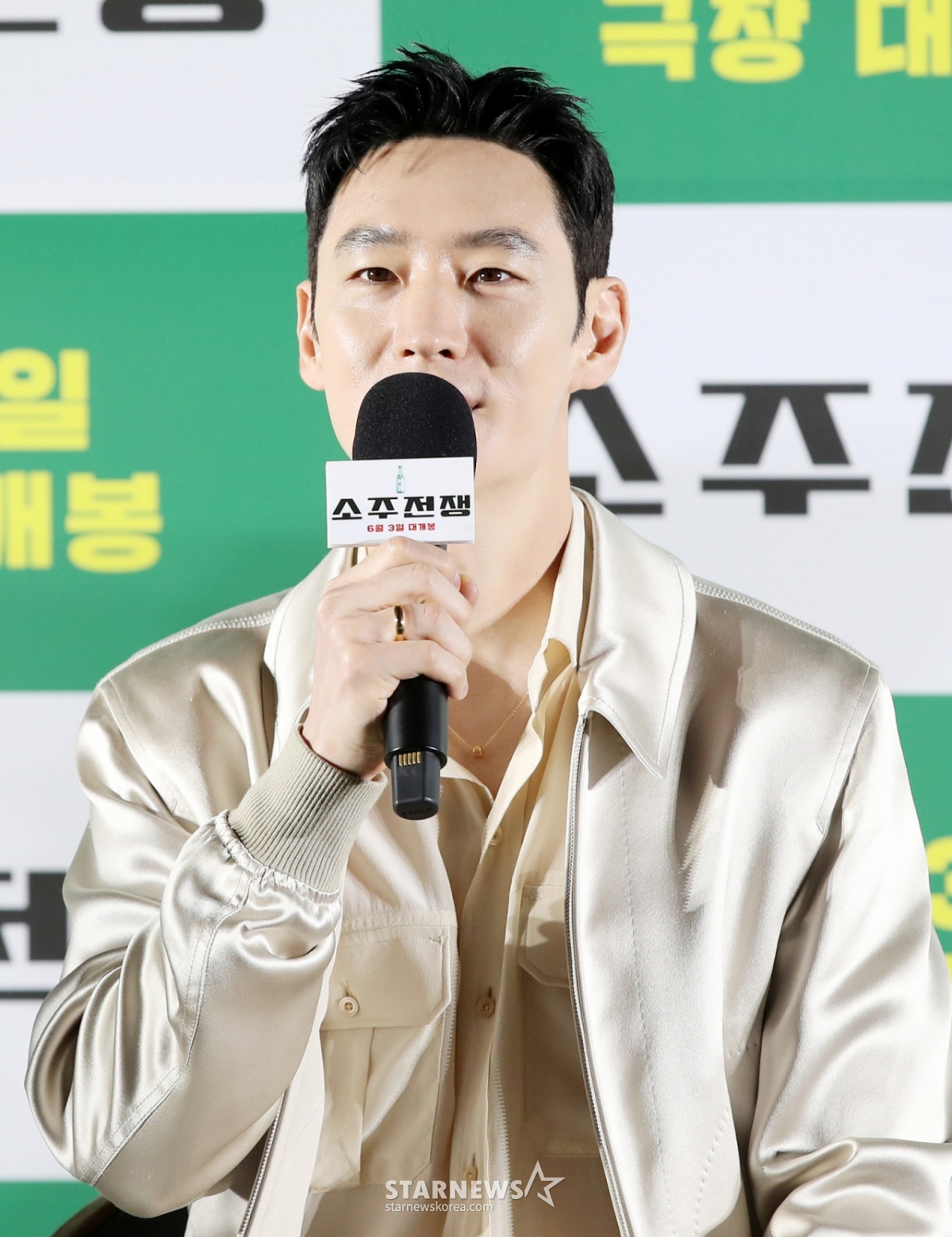 '소주전쟁'은 1997년 IMF 외환위기, 소주 회사가 곧 인생인 재무이사 표종록(유해진 분)과 오로지 수익만 추구하는 글로벌 투자사 직원 최인범(이제훈 분)이 대한민국 국민 소주의 운명을 걸고 맞서는 이야기를 그린다. 오는 6월 3일 개봉 예정.