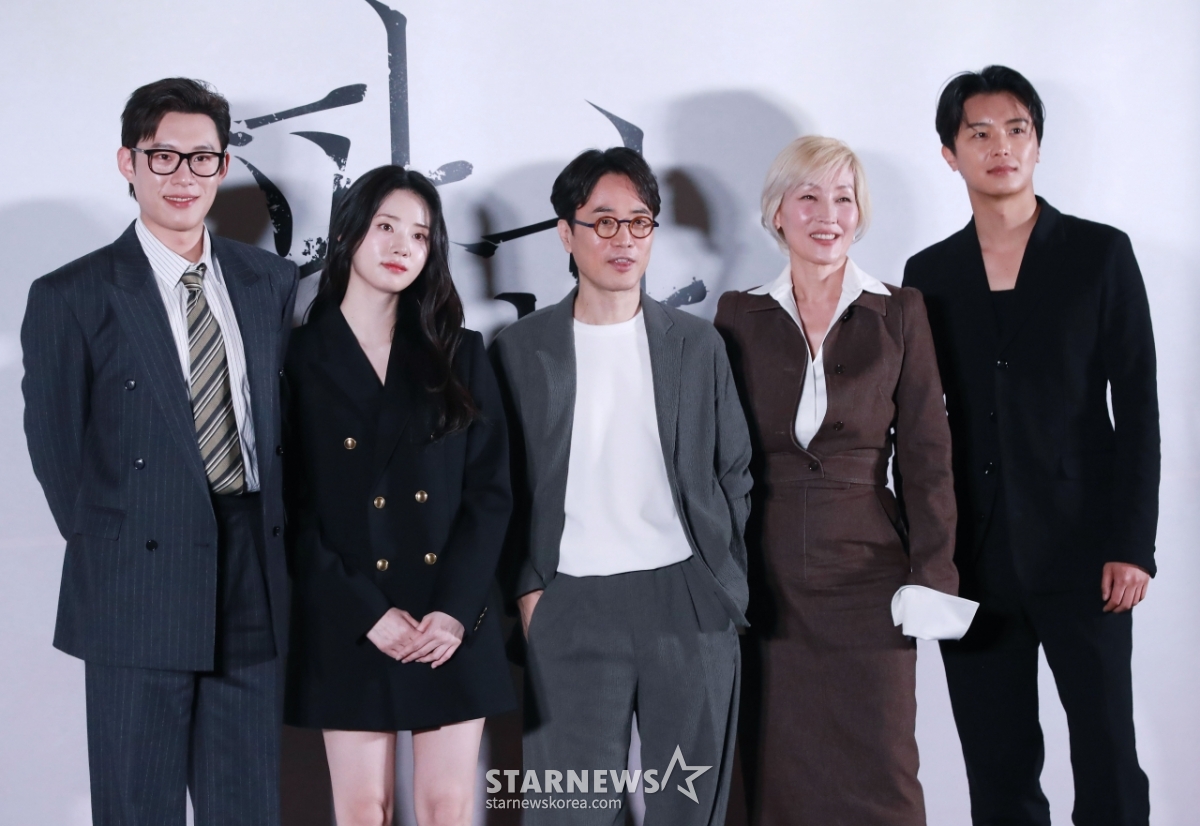 배우 김성철, 신시아, 민규동 감독, 배우 이혜영, 연우진이 24일 오후 서울 CGV용산아이파크몰에서 진행된 영화 '파과'(감독 민규동) 언론배급시사회 및 기자간담회에 참석해 포즈를 취하고 있다.