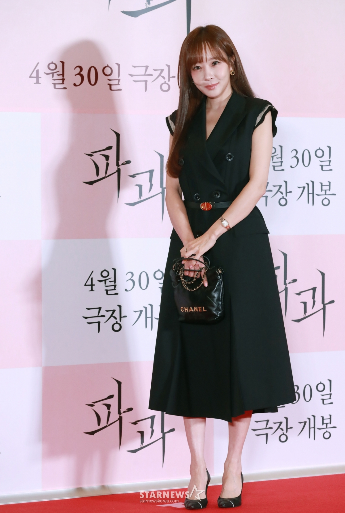 배우 소유진이 24일 오후 서울 CGV용산아이파크몰에서 진행된 영화 '파과'(감독 민규동) VIP 시사회에 참석해 포즈를 취하고 있다.