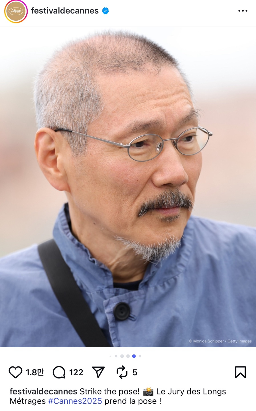 늦둥이 아빠다운 '아들 바보' 미소를 보였던 홍상수 감독은 김민희 없이 홀로 참석한 영화제에선 멀끔하게 슈트를 입고 극과 극 온도 차를 나타냈다. 희끗한 백발머리에 단정한 정장 차림으로 묵직한 심사위원의 포스를 풍겼다. 야외 포토월에선 슈트를 벗고 평소의 편안한 차림을 선보였다.