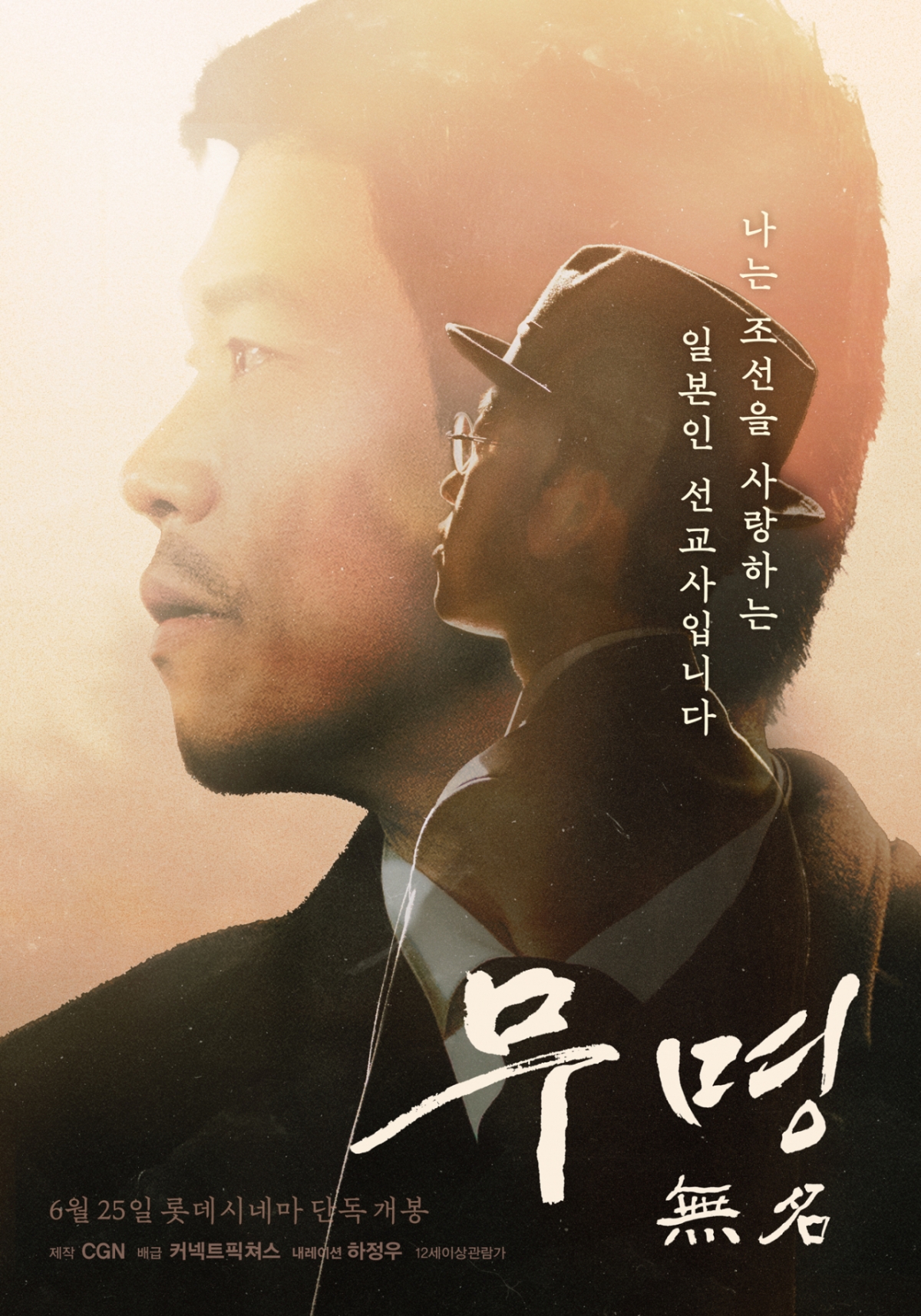 '무명 無名'은 인터뷰 등 자료 화면과 재현 드라마가 융합된 다큐 영화로, 한국에서도 일본에서도 잊힌, 이름 없는 선교사들의 생생한 발자취를 2년의 시간 동안 따라간다. 최근 영화 '로비'의 감독이자 배우로 맹활약한 배우 하정우가 내레이션을 맡아 차분하고 진실성 넘치는 목소리로 관객들을 이끈다.