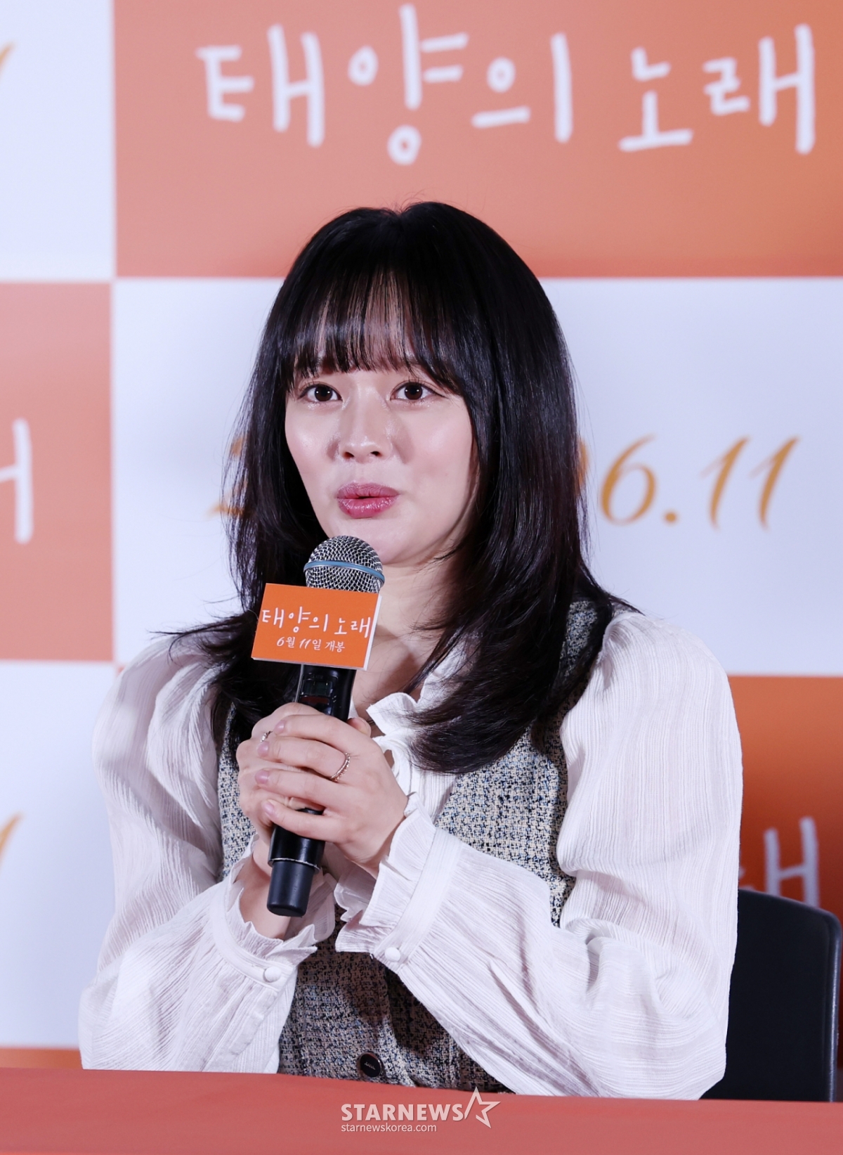 배우 정지소가 2일 서울 용산구 CGV 용산에서 진행된 영화 '태양의 노래(조영준 감독)' 언론시사회 및 기자간담회에 참석해 질의응답을 하고 있다. /2025.06.02 /사진=김휘선 hwijpg@