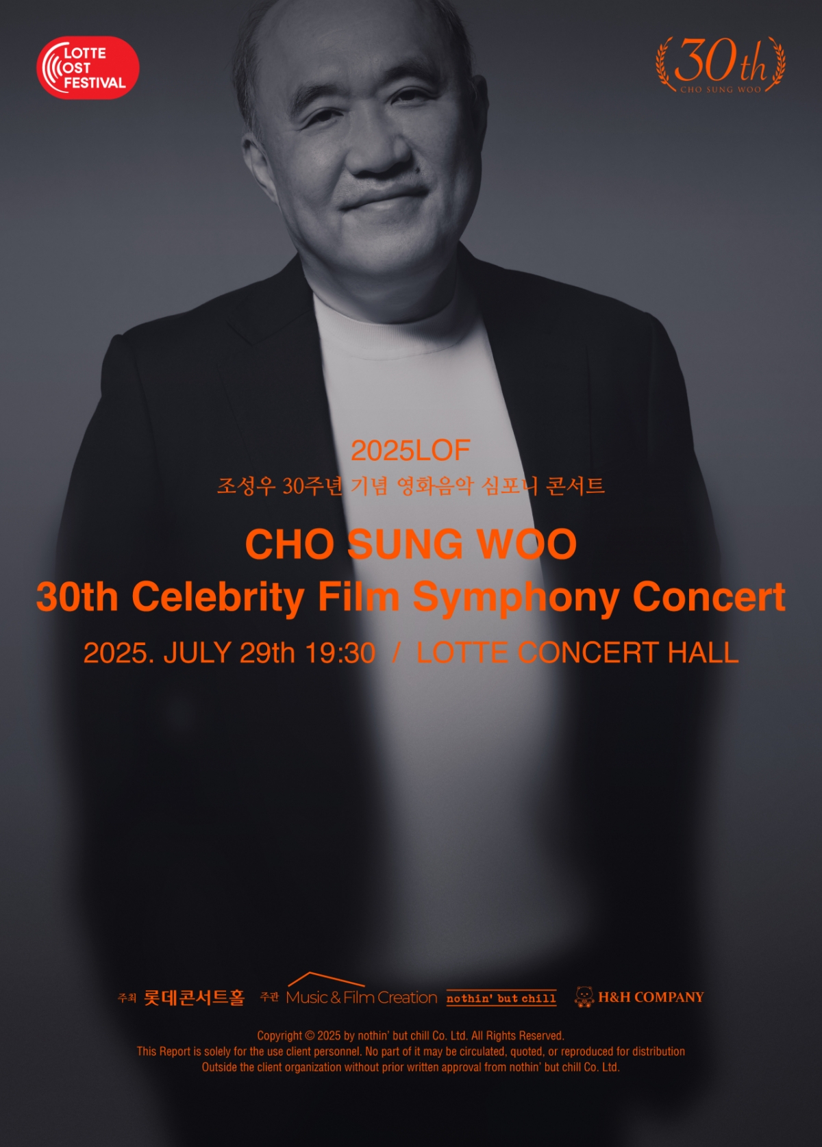 한편 '조성우 30주년 기념 영화음악 심포니 콘서트'는 11일 오후 1시부터 놀티켓, 티켓링크, 롯데콘서트홀에서 티켓 예매가 가능하다.