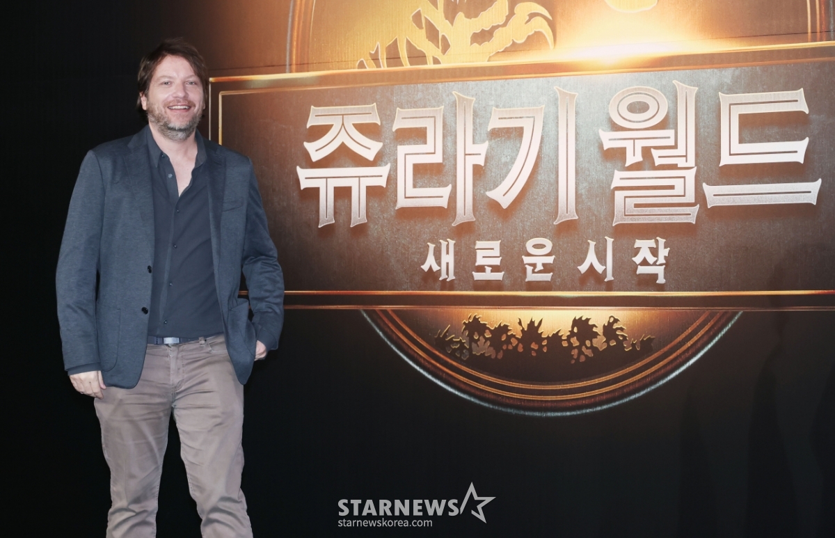 가렛 에드워즈 감독이 1일 오후 서울 중구 포시즌스 호텔에서 진행된 영화 '쥬라기 월드: 새로운 시작' 내한 기자간담회에 참석해 포즈를 취하고 있다.