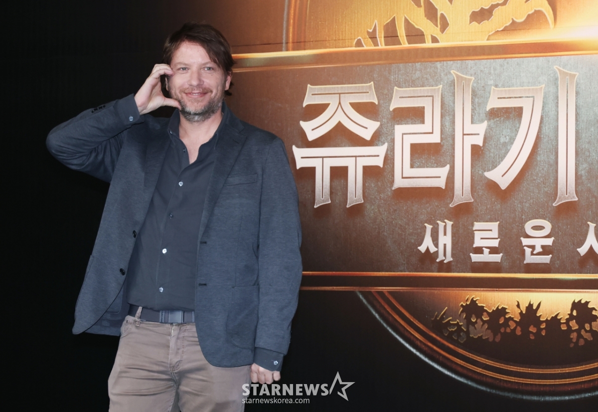 가렛 에드워즈 감독이 1일 오후 서울 중구 포시즌스 호텔에서 진행된 영화 '쥬라기 월드: 새로운 시작' 내한 기자간담회에 참석해 포즈를 취하고 있다.