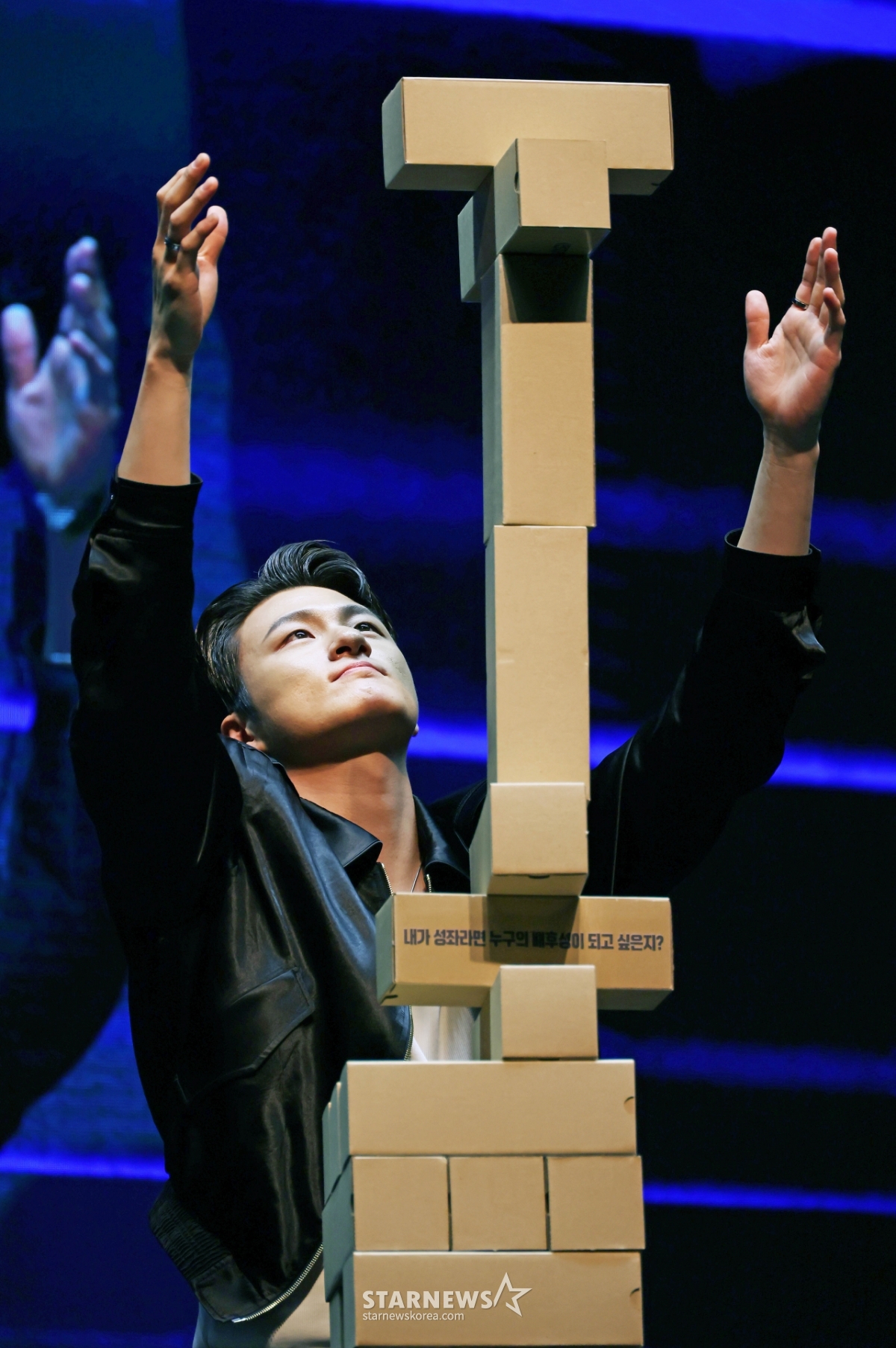 배우 신승호가 2일 오후 서울 광진구 예스24라이브홀에서 진행된 영화 '전지적 독자 시점' 쇼케이스에서 게임을 하고 있다.