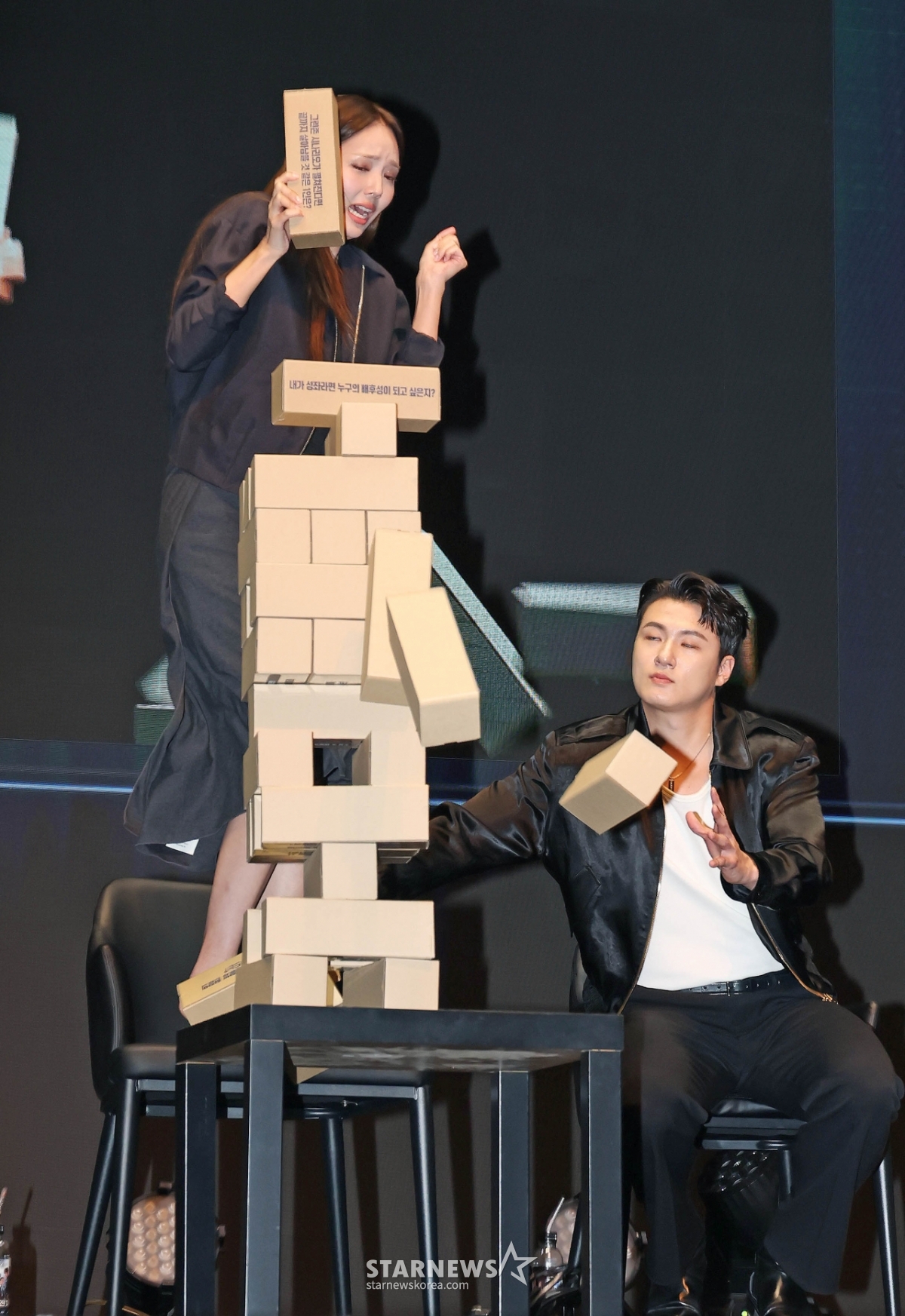 배우 채수빈이 2일 오후 서울 광진구 예스24라이브홀에서 진행된 영화 '전지적 독자 시점' 쇼케이스에서 게임을 하고 있다.