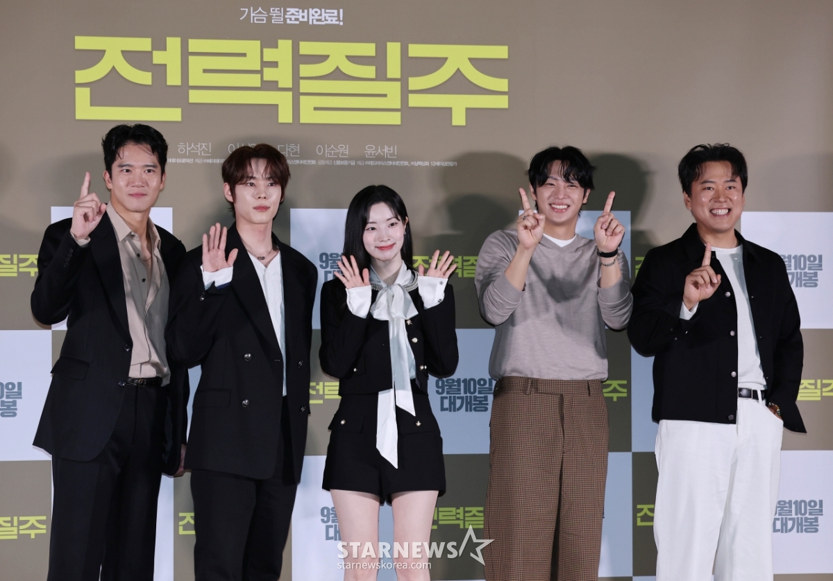 배우 하석진, 윤서빈, 다현, 이신영, 이순원이 5일 오후 서울 롯데시네마월드타워점에서 진행된 영화 '전력질주'(감독 이승훈) 언론배급시사회 및 기자간담회에 참석해 포즈를 취하고 있다.