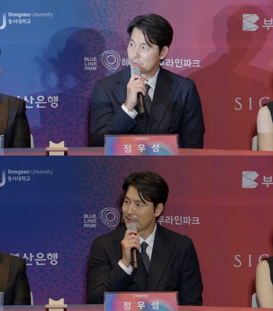정우성은 수염을 기르고, 굳은 표정으로 등장했다. 그는 부일영화상 핸드프린팅 행사에 참여한 데 대해 "함께한다는 건 늘 즐겁다"면서 "작년 수상자로서 시상자로도 함께하게 됐는데 함께하는 영화가 없다는 게 좀 아쉽다"고 밝혔다.