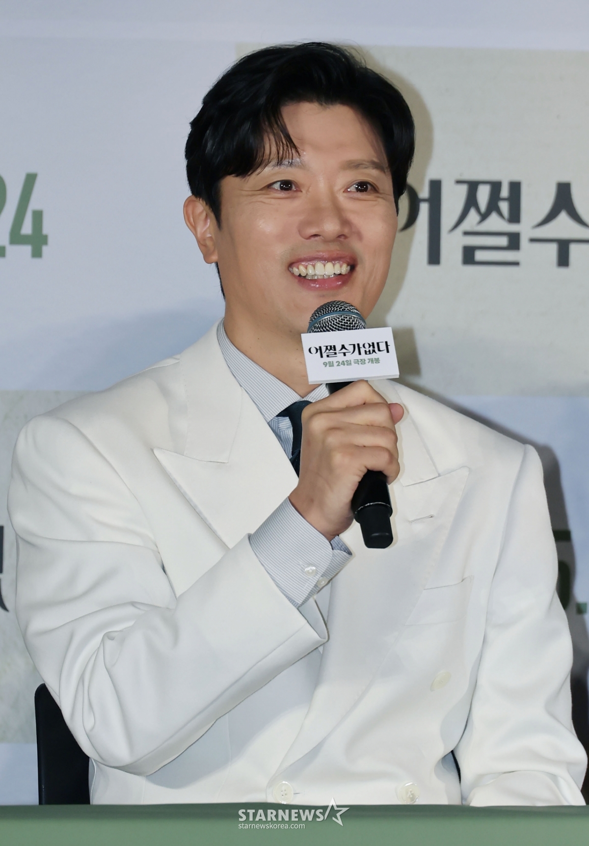 배우 박희순이 22일 오후 서울 CGV용산아이파크몰에서 진행된 영화 '어쩔수가 없다'(감독 박찬욱) 언론배급시사회 및 기자간담회에 참석해 질문에 답하고 있다.
