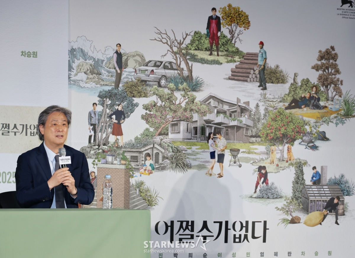 박찬욱 감독이 22일 오후 서울 CGV용산아이파크몰에서 진행된 영화 '어쩔수가 없다'(감독 박찬욱) 언론배급시사회 및 기자간담회에 참석해 질문에 답하고 있다.
