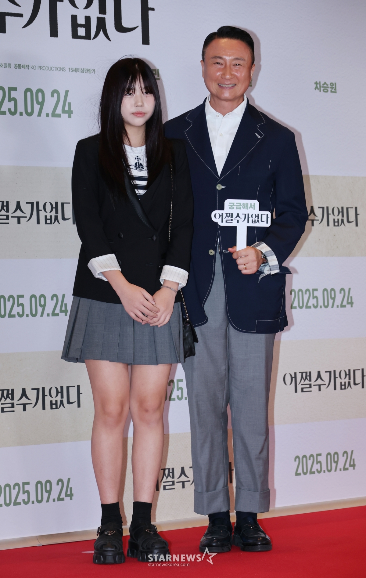 작곡가 주영훈과 딸 주아라가 22일 오후 서울 CGV용산아이파크몰에서 진행된 영화 '어쩔수가 없다'(감독 박찬욱) VIP시사회에 참석해 포즈를 취하고 있다.