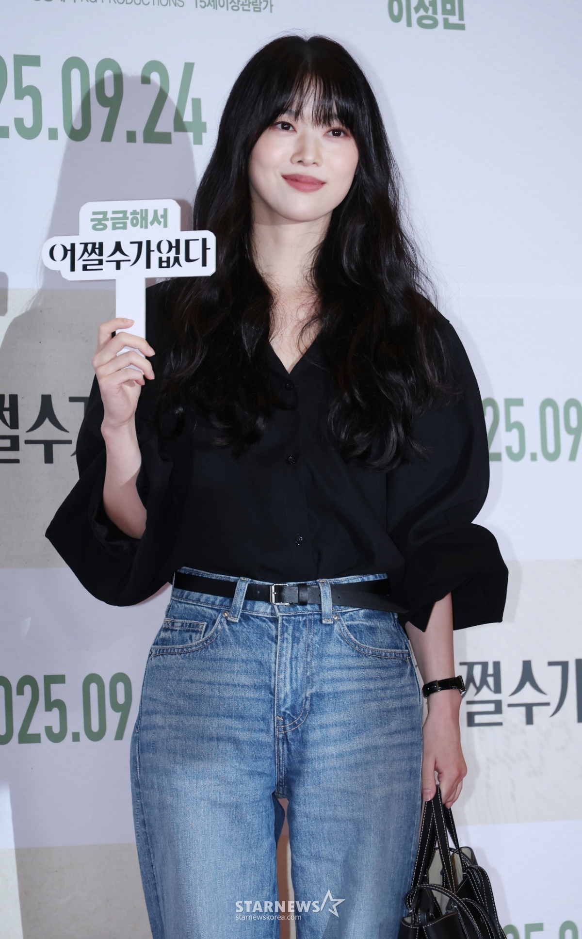 배우 정이서가 22일 오후 서울 CGV용산아이파크몰에서 진행된 영화 '어쩔수가 없다'(감독 박찬욱) VIP시사회에 참석해 포즈를 취하고 있다.