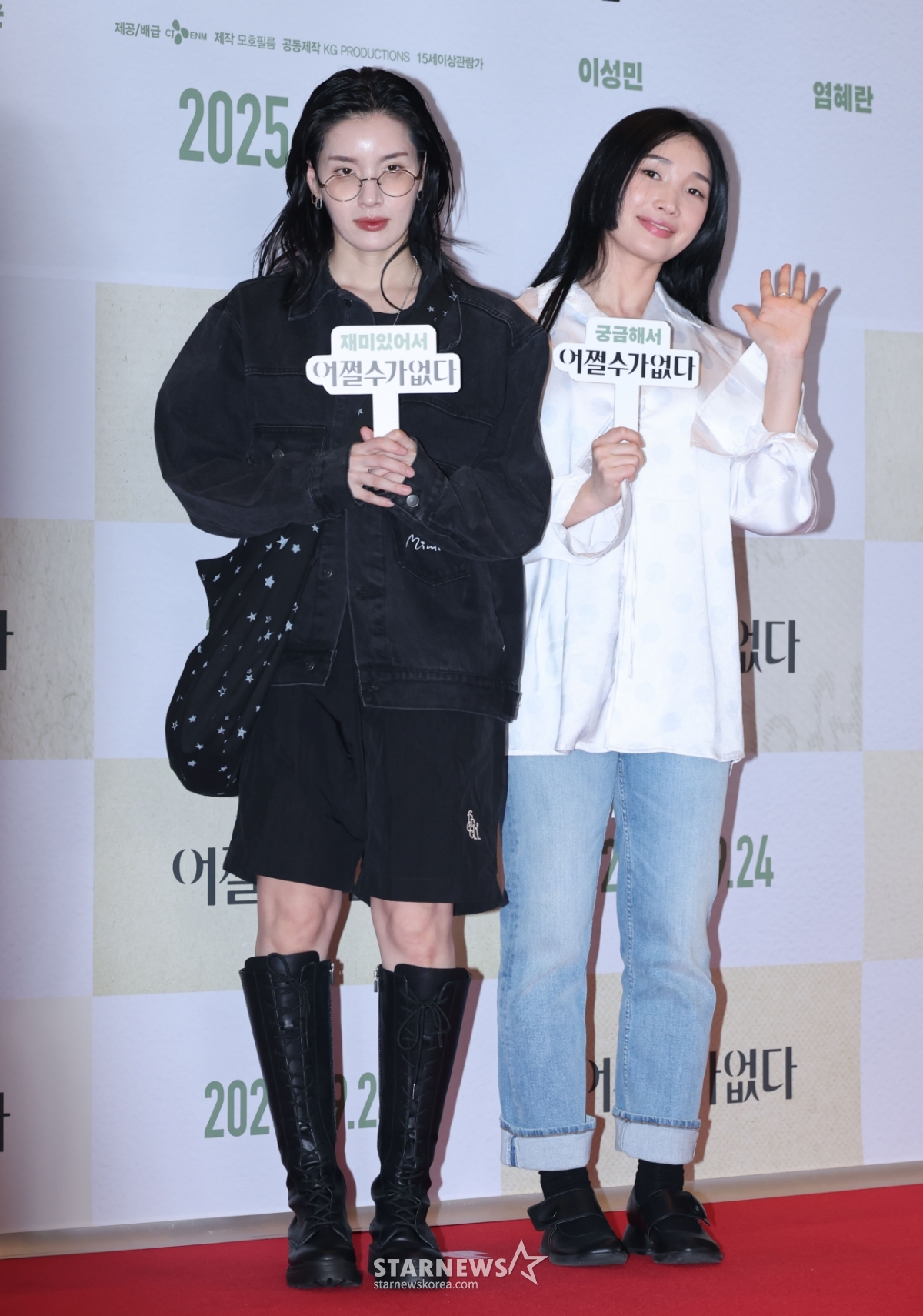 모니카, 립제이가 22일 오후 서울 CGV용산아이파크몰에서 진행된 영화 '어쩔수가 없다'(감독 박찬욱) VIP시사회에 참석해 포즈를 취하고 있다.