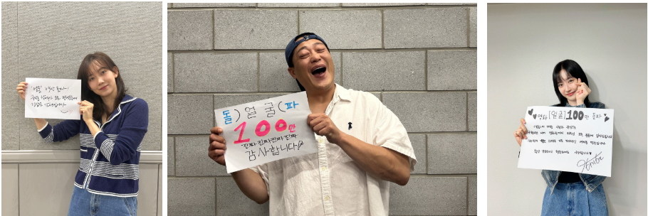 '얼굴' 주역들은 이 같은 성원에 100만 기념 감사 메시지를 전했다. 연상호 감독과 박정민, 권해효, 신현빈, 임성재, 한지현은 직접 정성스럽게 손글씨로 적은 메시지를 전달함과 동시에, 추석 연휴 기간 동안 진행되는 무대인사를 통해서도 직접 감사 인사를 전할 예정이다.