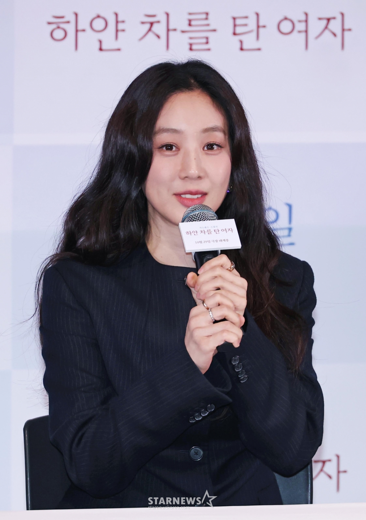 배우 정려원이 27일 오후 서울 CGV용산아이파크몰에서 진행된 영화 '하얀 차를 탄 여자'(감독 고혜진) 언론배급시사회 및 기자간담회에 참석해 질문에 답하고 있다.