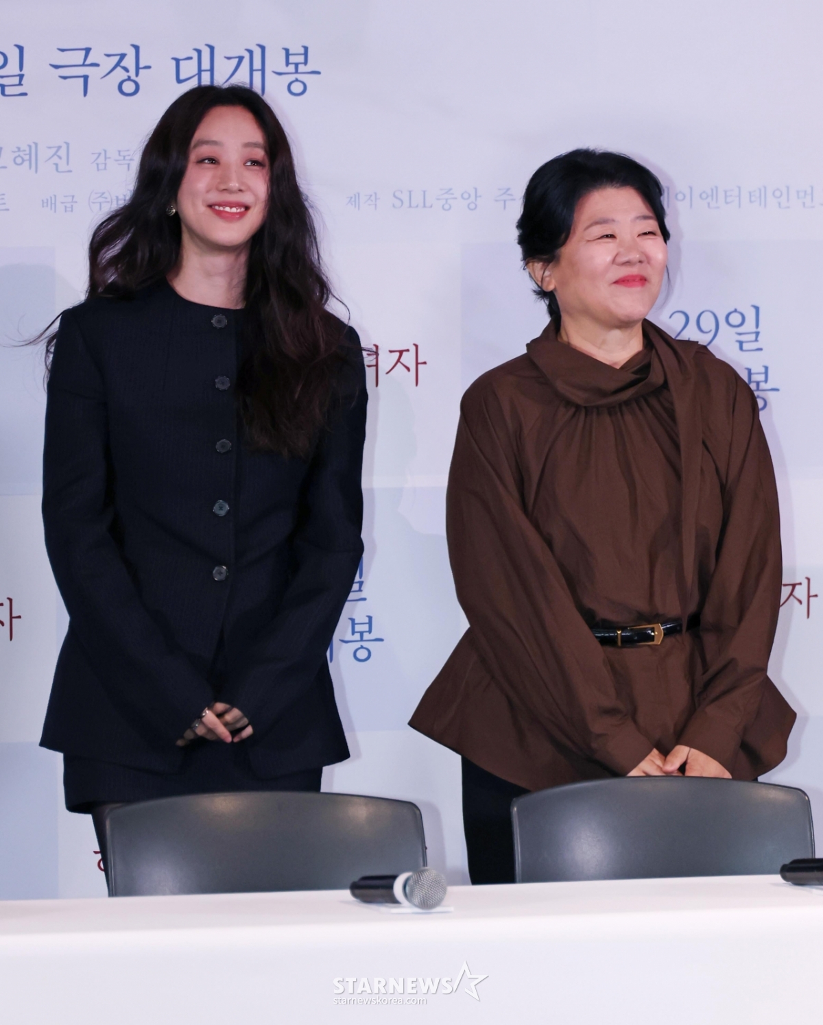 배우 정려원, 이정은이 27일 오후 서울 CGV용산아이파크몰에서 진행된 영화 '하얀 차를 탄 여자'(감독 고혜진) 언론배급시사회 및 기자간담회에 참석해 인사를 하고 있다.