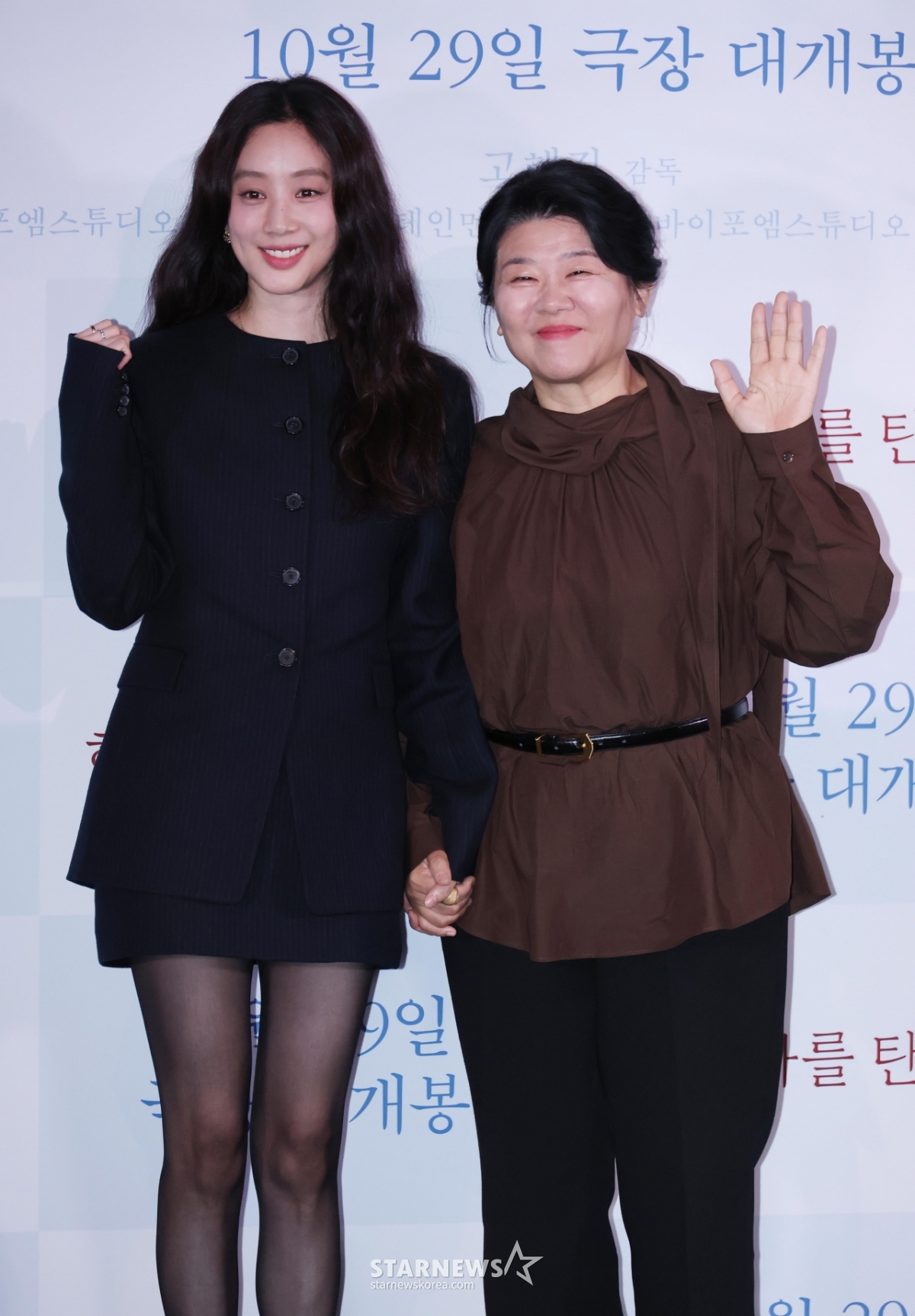 배우 정려원, 이정은이 27일 오후 서울 CGV용산아이파크몰에서 진행된 영화 '하얀 차를 탄 여자'(감독 고혜진) 언론배급시사회 및 기자간담회에 참석해 포즈를 취하고 있다.