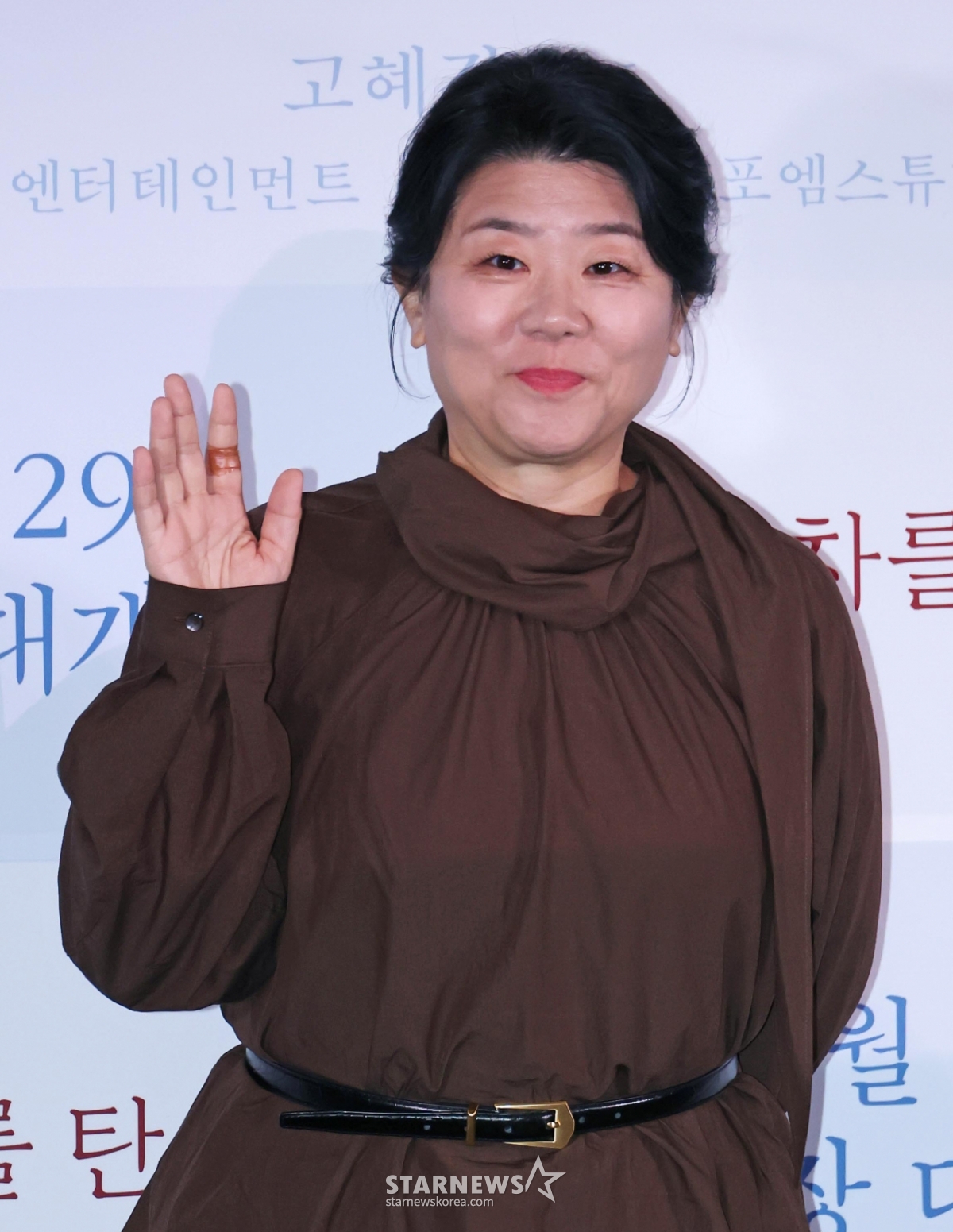 배우 이정은이 27일 오후 서울 CGV용산아이파크몰에서 진행된 영화 '하얀 차를 탄 여자'(감독 고혜진) 언론배급시사회 및 기자간담회에 참석해 포즈를 취하고 있다.