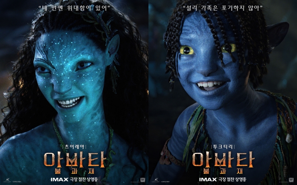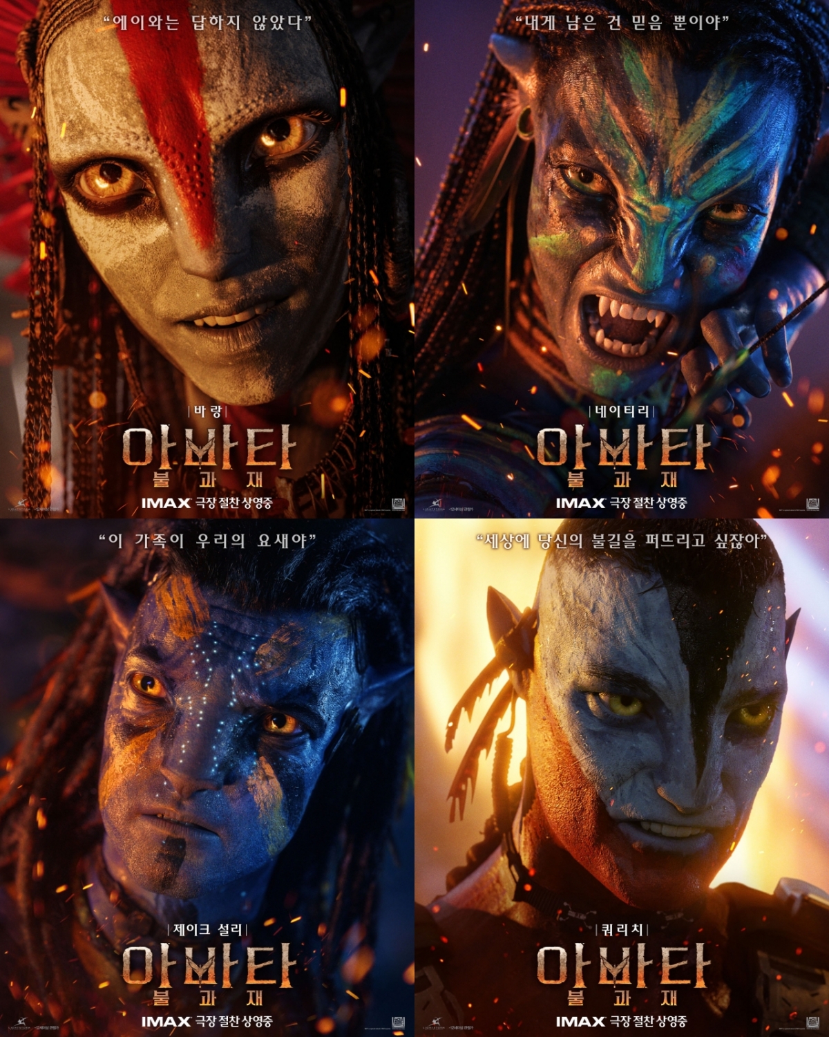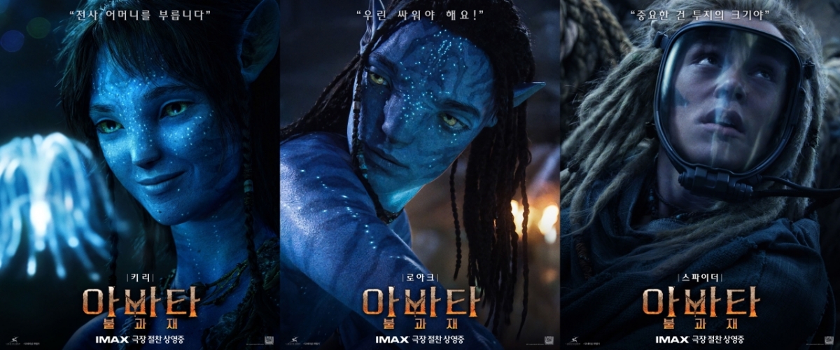 개봉을 기념해 공개된 9종의 캐릭터 포스터는 새롭게 등장하는 캐릭터부터 '아바타' 시리즈를 이끈 주역들과 다음 세대를 끌고 나갈 '설리' 가족의 아이들의 모습까지, 다양한 이들의 모습이 담겨 이목을 집중시킨다.