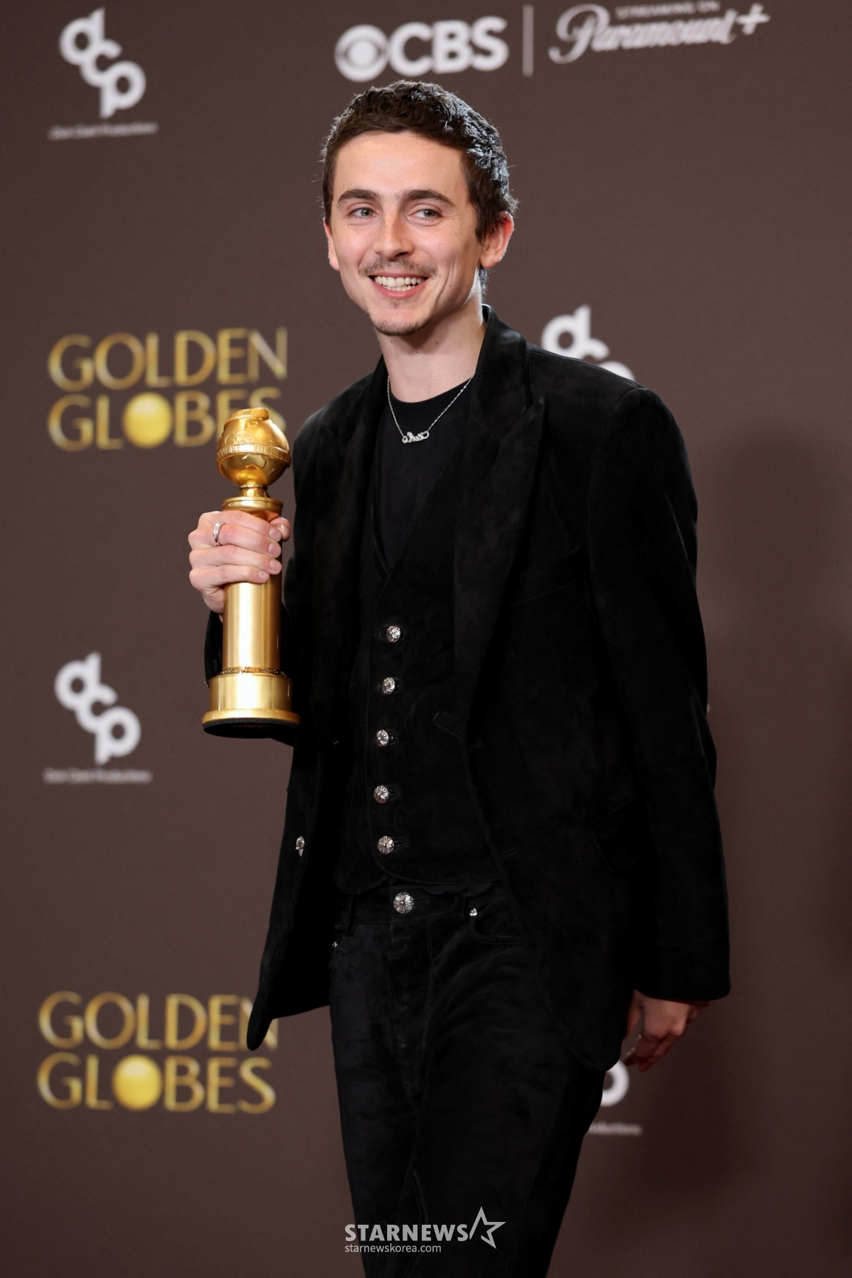 티모시 샬라메는 다섯 번째 골든글로브 후보 지명이지만, 첫 수상이다. 그는 "아버지는 제게 늘 감사하는 마음을 갖도록 가르쳐 주셨다. 그 덕분에 이전 시상식들에서 빈손으로 돌아가더라도, 이 자리에 있다는 것만으로도 감사할 수 있었다"며 "하지만 솔직히 말하자면, 그런 순간들이 있었기 때문에 이 순간이 더 달콤하게 느껴진다"고 말했다.