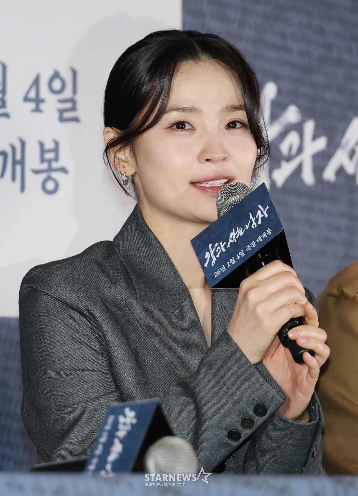 배우 전미도가 21일 오후 서울 강남구 메가박스 코엑스에서 진행된 영화 '왕과 사는 남자' 언론배급시사회 및 기자간담회에 참석해 질문에 답하고 있다.