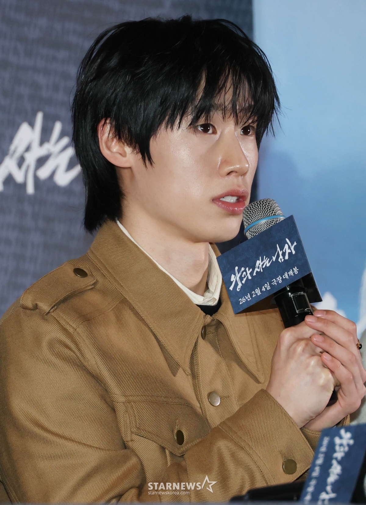 배우 김민이 21일 오후 서울 강남구 메가박스 코엑스에서 진행된 영화 '왕과 사는 남자' 언론배급시사회 및 기자간담회에 참석해 질문에 답하고 있다.