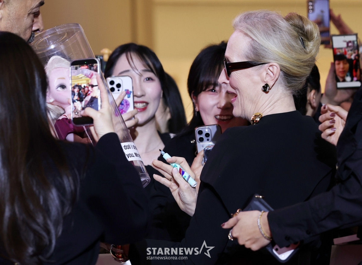 연예영화메릴 스트립, 한국 팬들에게 선물도 받아요[★포토]발행 : 2026.04.08 ・ 20:09조회수 :김휘선 기자배우 메릴 스트립이 8일 서울 영등포구 타임스퀘어에서 진행된 영화 '악마는 프라다를 입는다 2' 레드카펫 행사에서 팬들에게 사인을 하고 있다. /2026.04.08<저작권자 © 스타뉴스, 무단전재 및 재배포 금지>브리핑추천 기사김휘선 기자기자홈좋아요연예-영화의 인기 급상승 뉴스연예-영화의 최신 뉴스AD