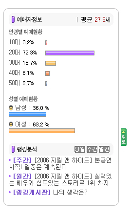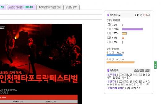 11일까지 '인천 펜타포트 락 페스티벌'의 예매 현황을 보면 남자 36%, 여자 64%로 여자 예매자가 약 2배 가까운 예매율을 보이고 있다. 록 페스티벌이라는 이름과 록음악의 성격상 남성 관객이 대부분일 것이라는 예상을 깨고 있어 이 행사를 준비하는 관계자들도 의아해하고 있다.