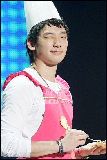 가수 비가 4일 오후 4시 서울 올림픽공원 역도 경기장에서 열린 팬클럽 '더 클라우드'와의 팬미팅에서 팬들에게 줄 샌드위치를 만들며 윙크를 하고 있다.