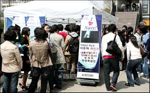 17일 오후 서울 연세대 학생회관에서 열린 세계적인 피아니스트 이루마가 일병 계급장을 단 군복을 입고 해군 사관후보생 모집 홍보를 겸한 팬 사인회에서 해군 사관후보생 모집 홍보를 위한 팬들을 만나고 있다.