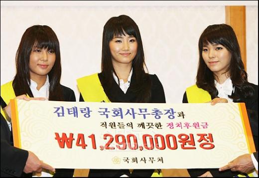 원더걸스의 리더 민선예는 "국회 직원들이 정성껏 모은 정치후원금 홍보대사로 위촉된 것에 대해 감사드린다"며 "나를 비롯한 예은, 유빈은 예비 선거권자다. 정치는 잘 모르지만 국민들이 모은 돈으로 깨끗한 정치가 이뤄지길 바란다"고 말했다.