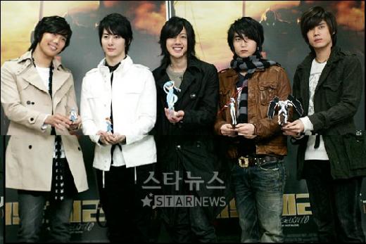 그룹 SS501(박정민, 김형준, 김현중, 허영생, 김규종)이 17일 오후 서울 용산 CGV에서 열린 '에반게리온:서' 프리미엄 시사회에서 포즈를 취하고 있다.