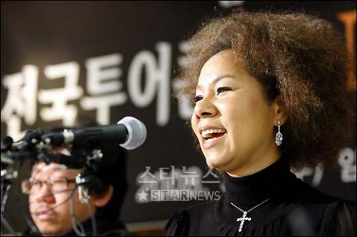 가수 인순이가 5일 서울 강남구 논현동 임피리얼 팰리스 호텔에서 데뷔30주년 기념 전국투어콘서트 'Legend' 제작발표회에 참석해 취재진의 질문에 답하고 있다.