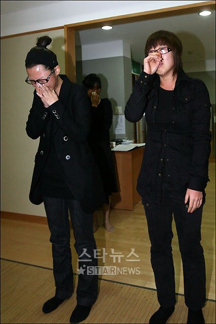 거북이의 멤버 금비와 지이가 故임성훈의 빈소에서 오열하고 있다.