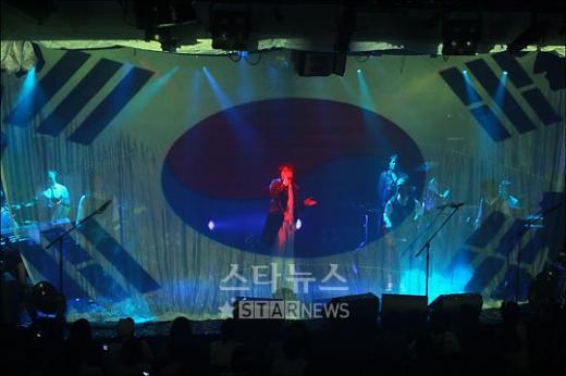 가수 김장훈이 31일 오후 서울 대학로 라이브극장에서 반크가 새롭게 모집할 해외 홍보대사를 위한 '한국 홍보전사 300' 무료 콘서트에서 멋진 무대를 선보이고 있다.