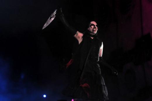 '기괴의 왕자'라 불리는 그룹 마릴린 맨슨이 15일 오후 서울 잠실야구장에서 열린 제4 회 'ETP페스티벌'에서 카리스마를 마음껏 뽐내고 있다.