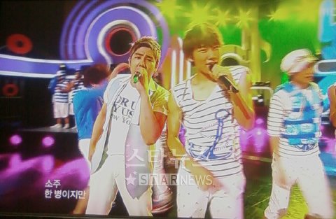 슈퍼주니어 T의 강인, 신동, 은혁은 삼총사의 '가자' 무대 중간에 깜짝 출연해 함께 신나는 무대를 선보였다.